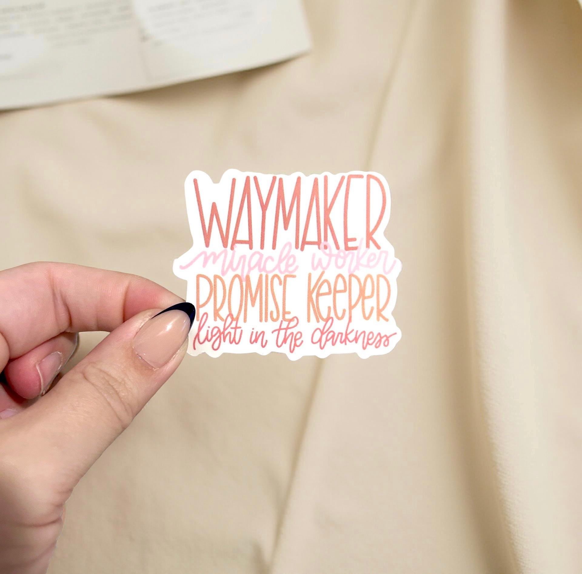 Inspired by the beloved worship song, this sticker features the powerful words: Waymaker, Miracle Worker, Promise Keeper, Light in the Darkness. Designed in soft, uplifting colors with playful lettering, it’s a daily encouragement that God is moving — even when we can’t see it.